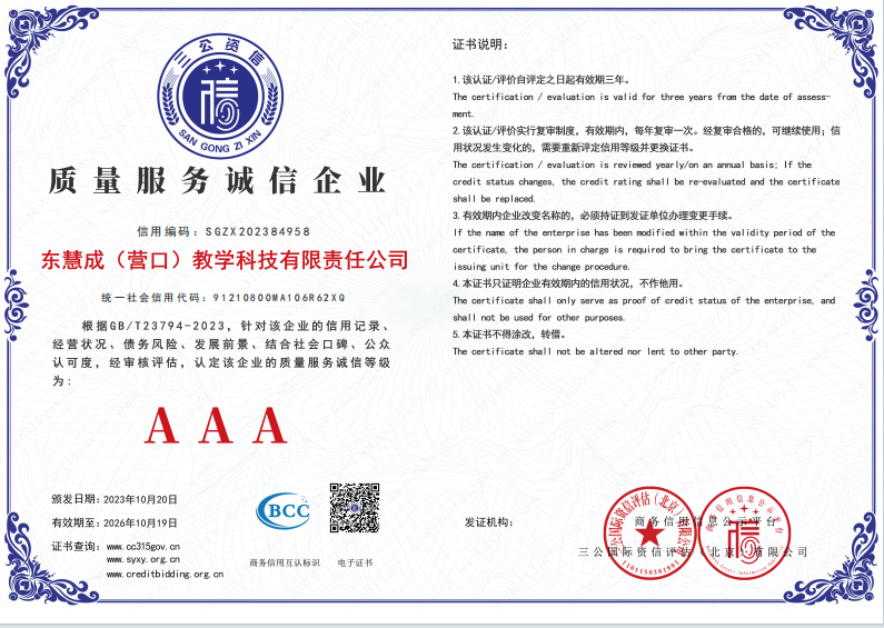東慧成(營口)教學(xué)科技有限責(zé)任公司